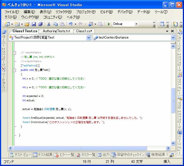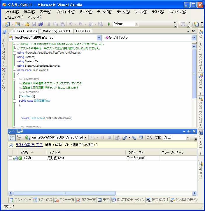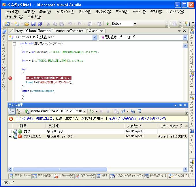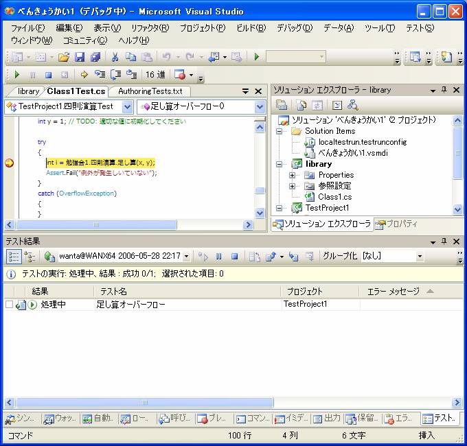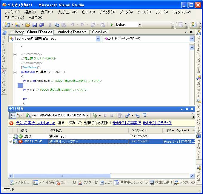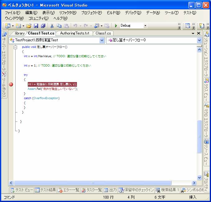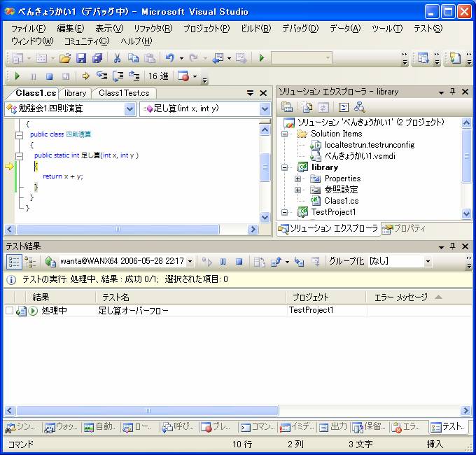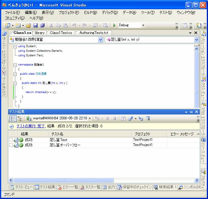 このようにVisual Studioではテストを実行することだけに専念することが出来ます。