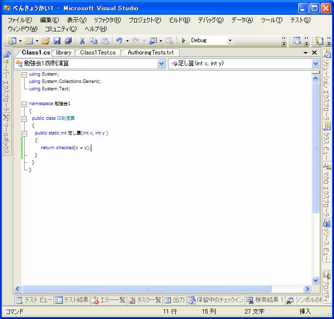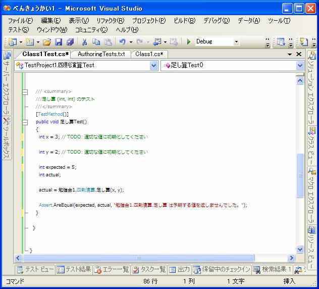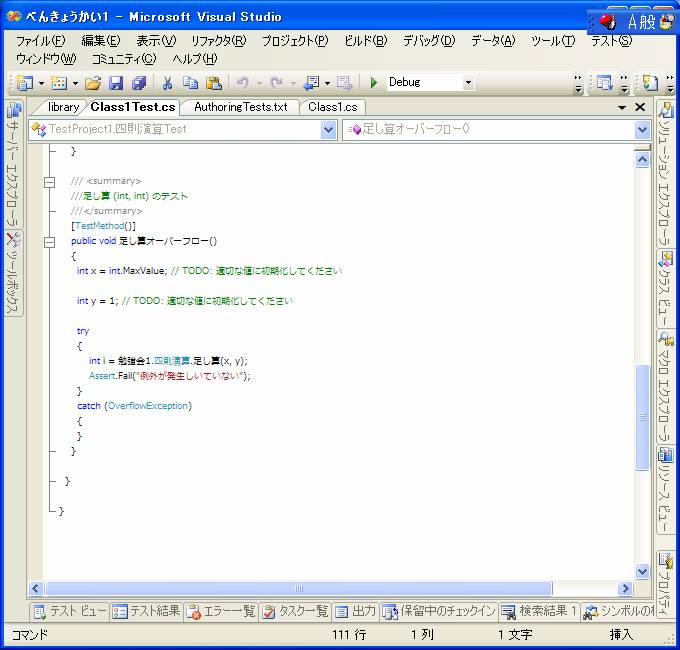 このようにVisual Studioではテストを実行することだけに専念することが出来ます。